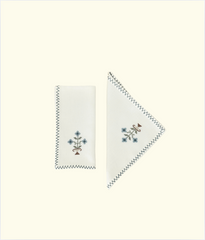 These blue 100% linen napkins are beautifully crafted with hand-embroidery details. Pair with the Rose Bud Placemats for the ultimate combination.