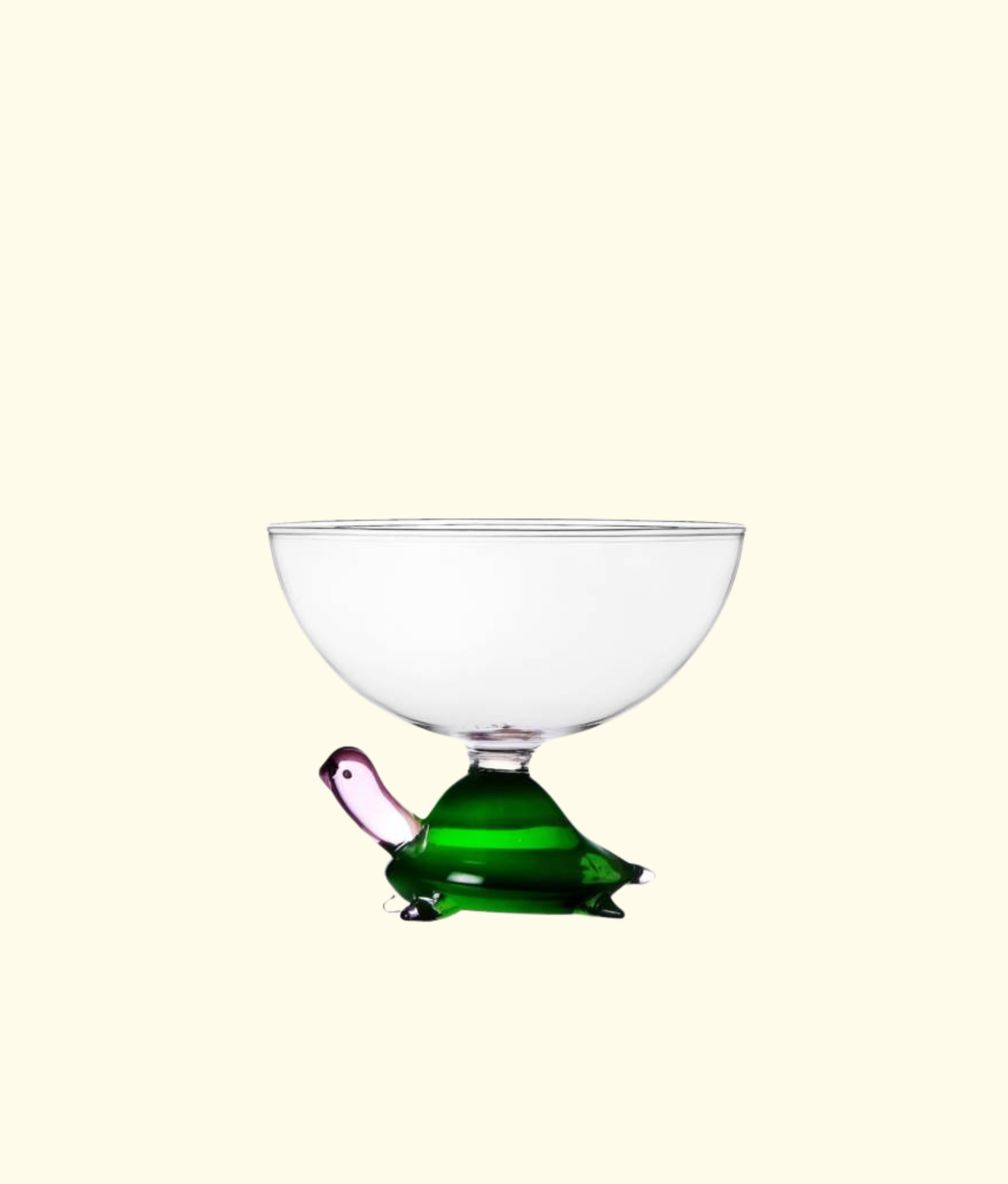 Design by Alessandra Baldereschi for Ichendorf Milano. A charming blend of whimsy and craftsmanship, this small glass bowl features a delicate green-toned turtle nestled below a clear hand-worked form. Part of the beloved Animal Farm collection, each piece is handmade and flame-worked, celebrating the artistry of glassmaking. A playful yet elegant addition to any table or display, perfect for serving or simply delighting.