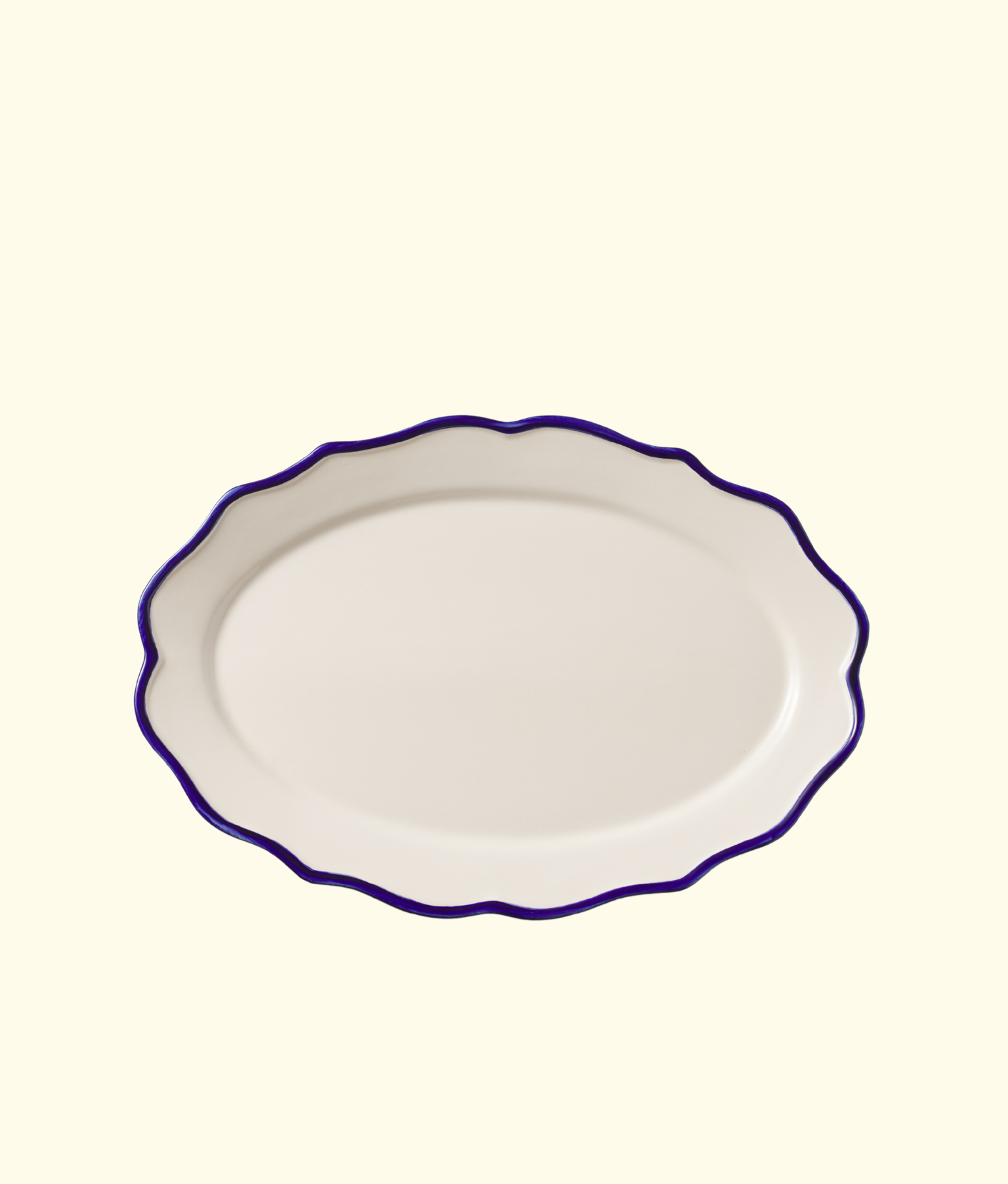The Jane Oval Platter is a centerpiece for a family style meal or an intimate date night. The hand-painted rim acts as a frame to elevate home-cooked meals or take out.