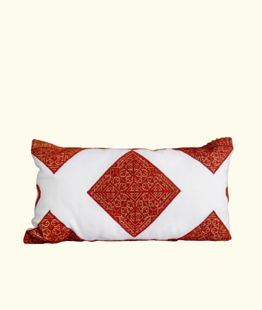 Part of the Sirocco Collection, the Medina of Fez pillow is crafted from pure linen, featuring meticulously hand-stitched accents of rare 19th-century Fez embroidery. Each embroidered fragment, once part of an ornate textile, carries the history and elegance of centuries-old Moroccan craftsmanship. Thoughtfully designed to blend history with modern interiors, this pillow serves as both a decorative statement and a testament to the enduring artistry of handmade textiles. Whether placed on a sofa, bed, or accent chair, it invites a touch of timeless sophistication into any space.