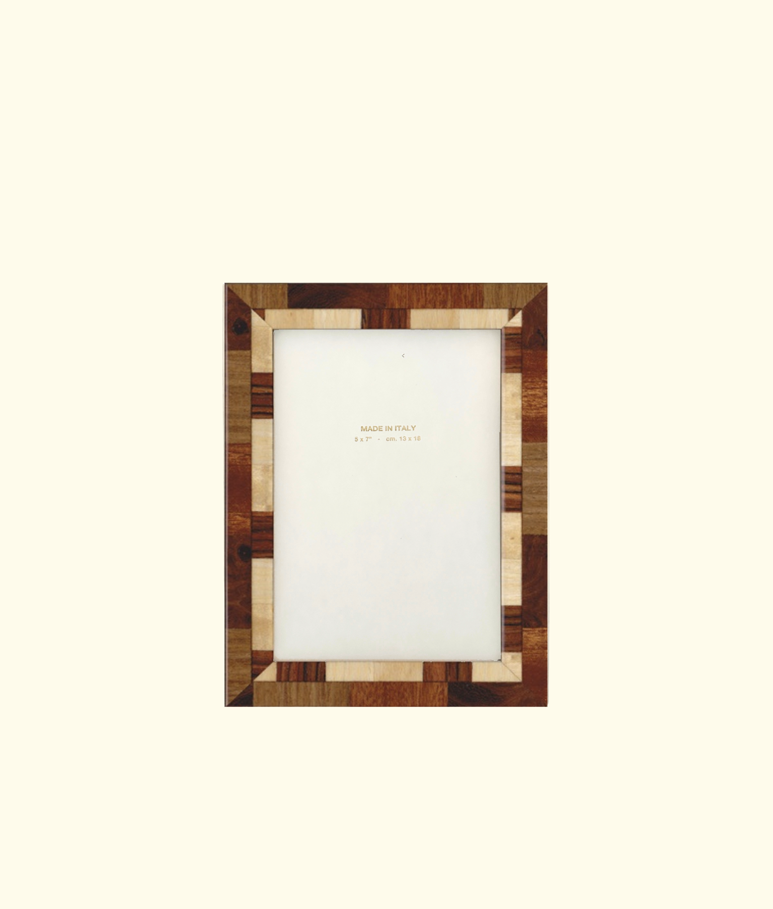 Each frame is made from fine tulipwood and finished with meticulous attention to detail. The velvet back features a gold-embossed logo, while soft brass closures allow for easy opening. Designed for versatility, the frame can be displayed both vertically and horizontally.