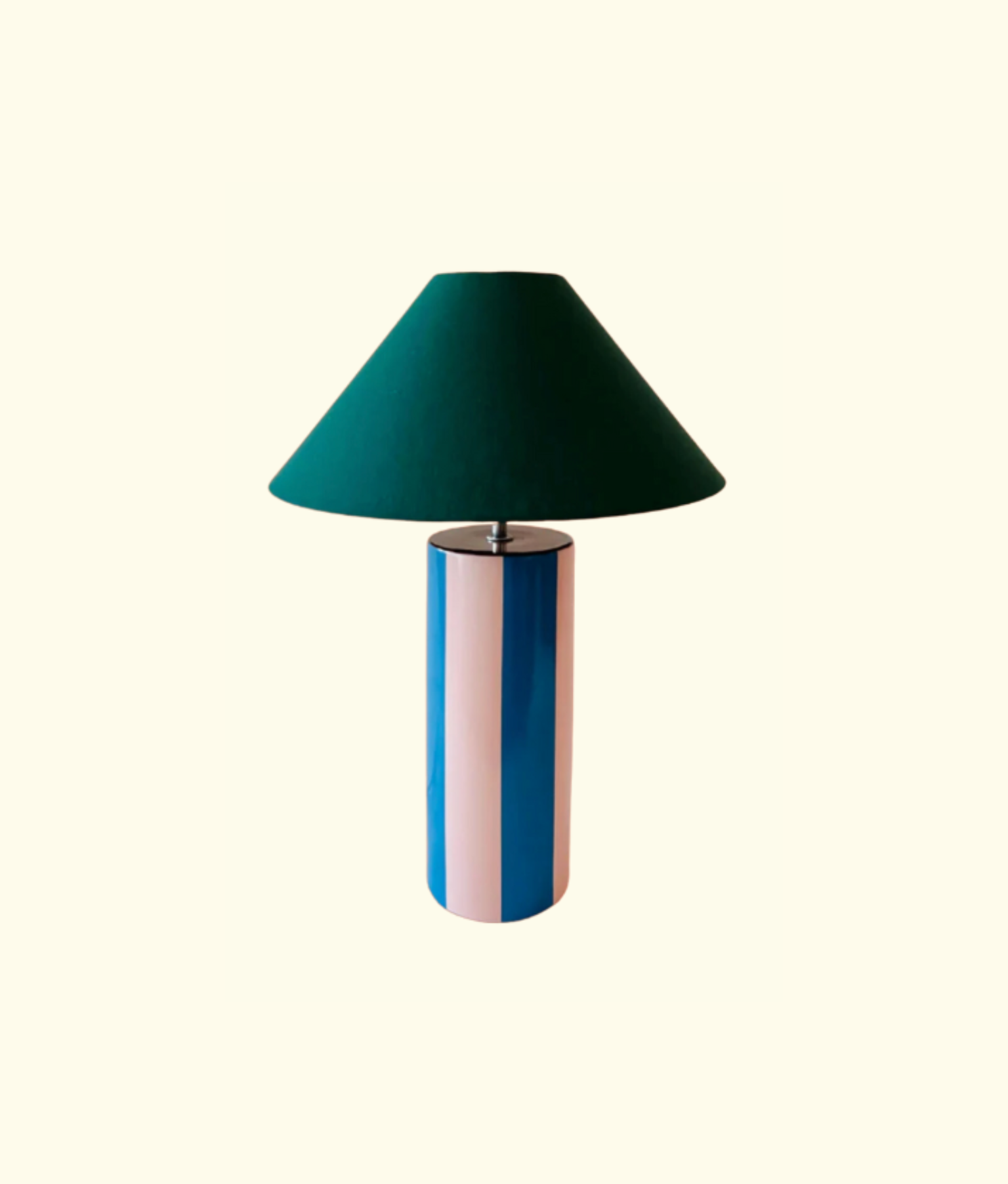 Elevate your space with the Cimelio Blu x Mattina Moderna collaboration Ombrellina lamp, a limited-edition piece that marries artisan craftsmanship with timeless beauty. Crafted in Portugal, this lamp features hand-painted stripes and luxurious fabrics, making it a stunning focal point for any room. Please note that each piece is handmade and variations in shape and color may occur.