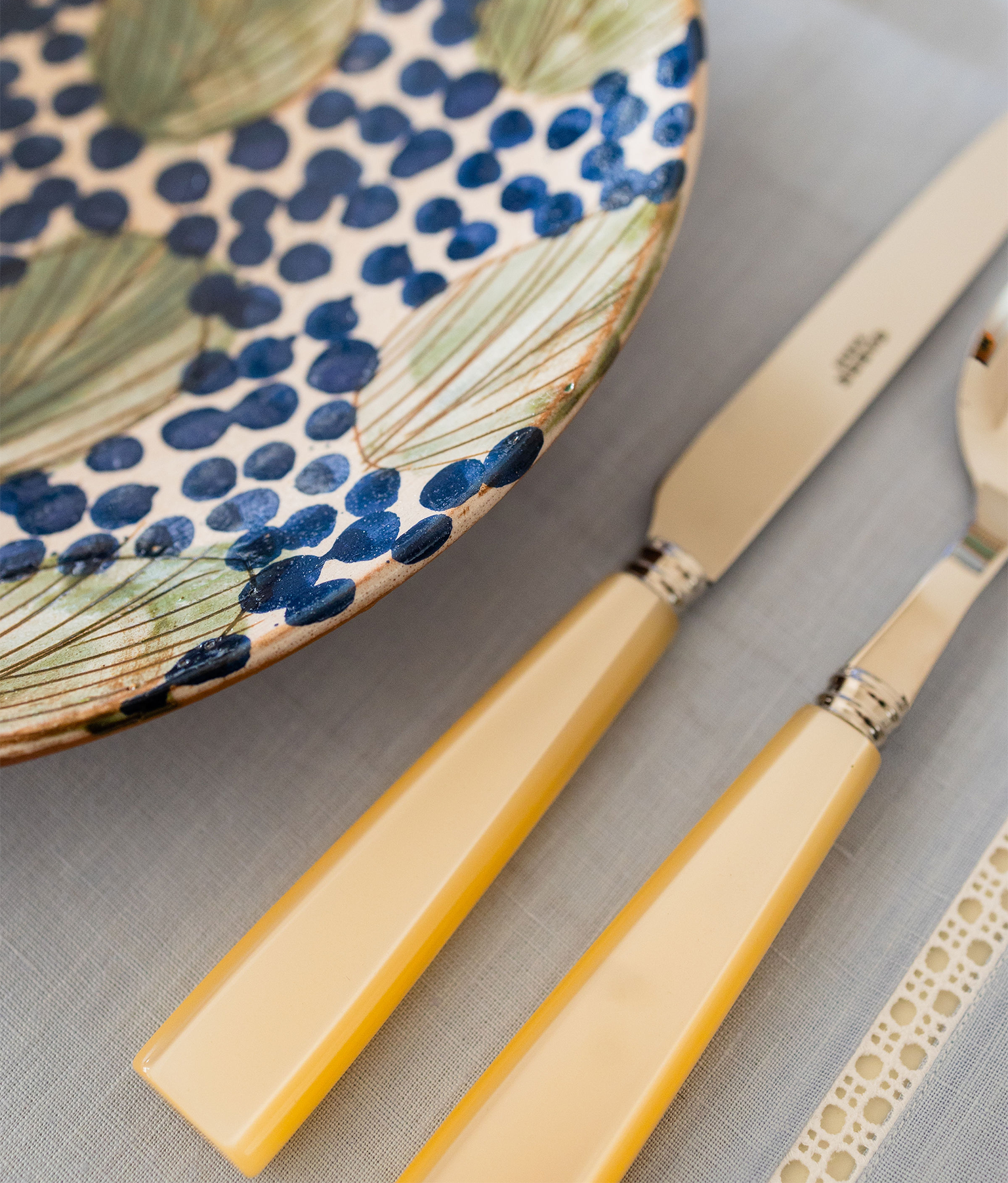 Francis Gelb, founder of Sabre, started the brand in 1993 after 7 years in his family's goldsmith business. The blades are made in France from a stainless steel and carbon alloy, necessary for a perfect cutting edge. The handles are made from acrylic for softness and aesthetic. Almost all of the cutlery the brand creates is crafted in a workshop in the Paris region.