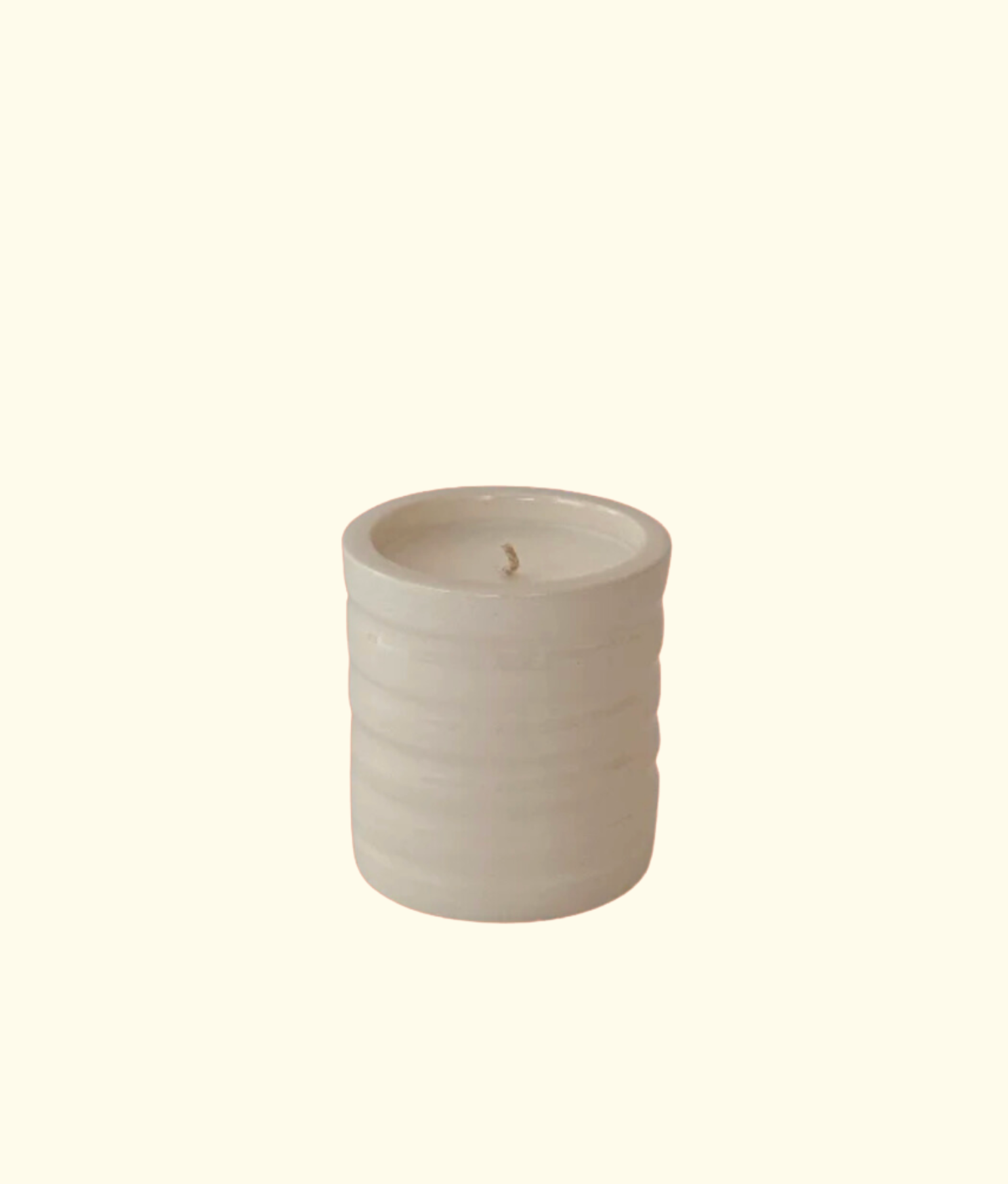 The Figueirinha candle was created from a handmade ceramic piece, molded in a small traditional family pottery in Portugal. Its wonderful fig fragrance awakens memories of sunny afternoons and surprises with the richness of its notes. The ceramic piece, with a wavy pattern which is created by the potter's hand, will ultimately become an object that lasts: to put food, flowers or small objects in.