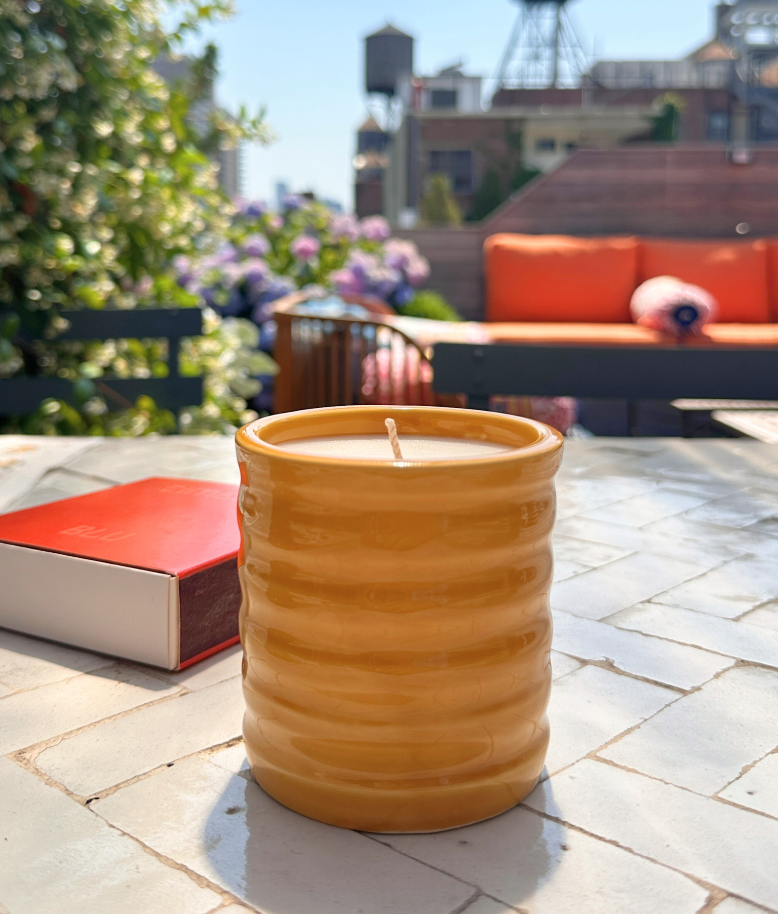 The Figueirinha candle was created from a handmade ceramic piece, molded in a small traditional family pottery in Portugal. Its wonderful fig fragrance awakens memories of sunny afternoons and surprises with the richness of its notes. The ceramic piece, with a wavy pattern which is created by the potter's hand, will ultimately become an object that lasts: to put food, flowers or small objects in.